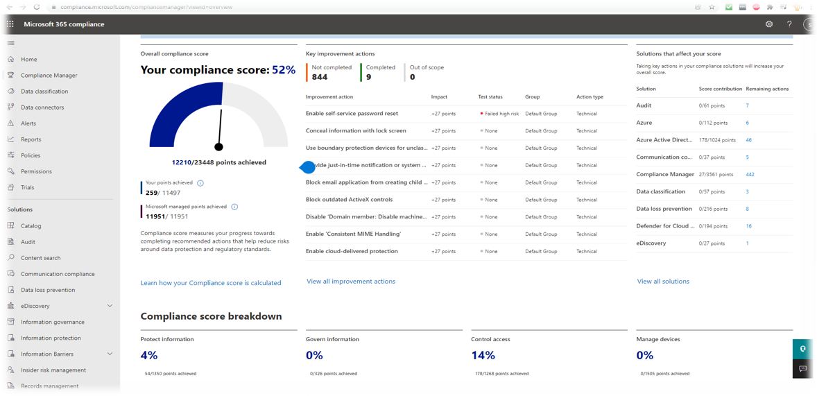Microsoft Compliance Manager is a feature in the Microsoft 365 compliance center that helps you manage your organization’s compliance requirements with greater ease and convenience.